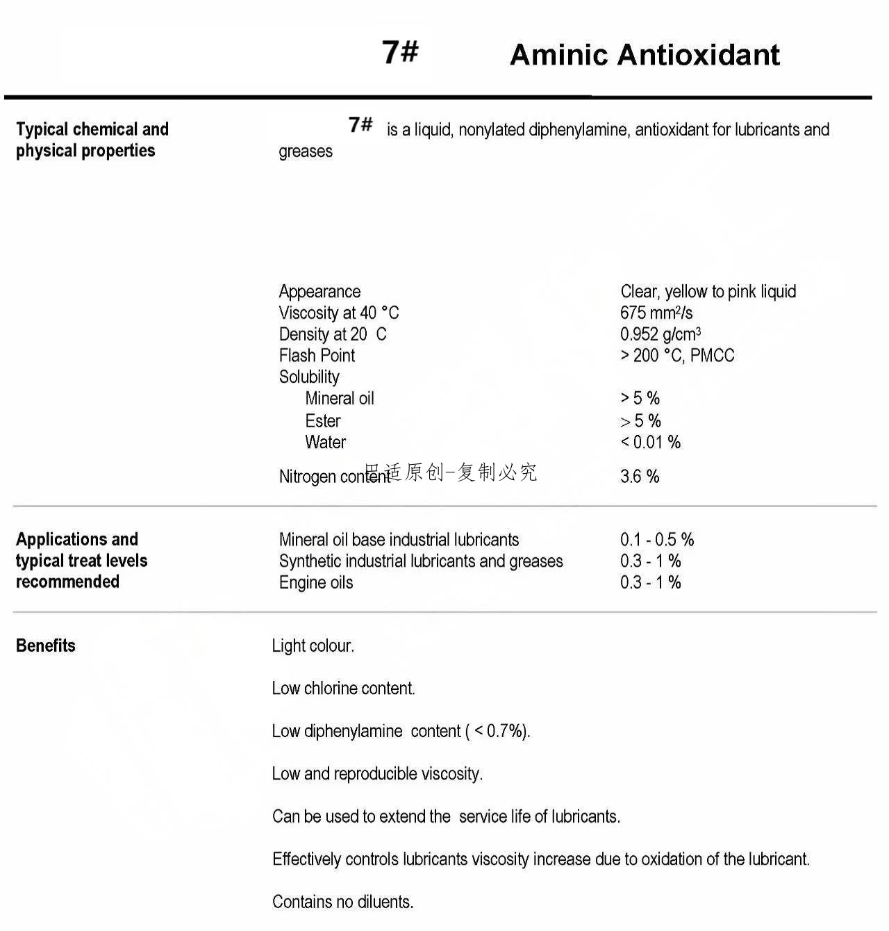 一种常见的烷基化胺类抗氧剂,透明黄色至橙色液体,用于多种油溶性产品的抗氧化。在高温下显著延缓氧化过程,有效控制液体粘度增长。